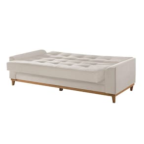 Sofá Cama 2 Lugares Living M-157 Veludo Martins Creme Sofa Cama 2 Lugares Living M-157 Veludo Martins Caracteristicas: Material: Veludo Requer Montagem?: Sim Acessoios inclusos: Nao Acompanha Chaise?: Nao Tipo do Acento, tem Pillow Top?: Assento Fixo Densidade Espuma Assento: D-28 Possui Mola no Assento? Tipo de mola?: Sim, Molas Bonnel Possui Persinta? Tipo de Persinta: Sim, Percinta Elastica Tipo do Encosto: Encosto Fixo Amofadas do encosto Fixa ou Solta?: Encosto Mecamismo Reclinavel, Almofadas Solta Densidade Espuma Encosto: 100 Fibra Silicone Posui Pes (Sim ou Nao): Sim Quantidade de Pes: 5 Tipo de Pes (Material): Madeira Acompanha Rodizio (Sim ou Nao): Nao Materia Prima: Elcalipto Tratado Revestimento: Espuma D-28 Soft Madeira Aparelhada ou Bruta?: Aparelhada A Madeira e Tratada? (Sim ou Nao): Sim E Bipartido ou Inteirico?: Inteirico