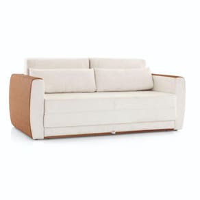 Sofá-Cama 2 Lugares MH-1609 Herval 188 cm Colchão Casal Linho Bege Laterais Marrom A
