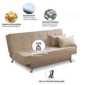 Sofá Diana, versátil que se transforma em cama confortável, oferecendo praticidade e funcionalidade em espaços diversos. Ideal para otimizar ambientes pequenos sem abrir mão do conforto para dormir.