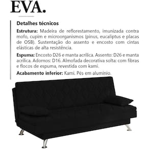 Sofa Cama 3 Lugares 193 cm Eva Veludo, é a escolha certa para você que busca conforto e bem-estar, tornando o ambiente em que estiver muito mais elegante e moderno. Estrutura em madeira de reflorestamento (pinus, eucaliptos e placas de OSB) e cintas elásticas de alta resistência. Composto por madeira imunizada contra mofo, cupim e microrganismos, revestimento em tecido veludo, encosto em espuma D-26 com manta acrílica, assento em espuma D-26 com manta acrílica, com abertura de até 124 cm, adornos em espuma D-16, almofadas decorativas soltas, com fibras e flocos de espuma, revestida com kami e manta acrílica. acabamento inferior em kami, e 4 pés em alumínio. Suportando até 130 kg por assento. Possui design diferenciado, que oferece sofisticação, versatilidade e charme ao seu ambiente. Este móvel chegará na sua casa separado em 01 volume.