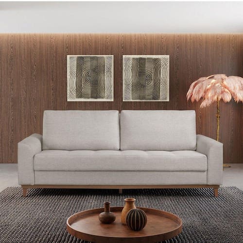 Deixe a sua sala de estar ainda mais elegante e confortável com o Sofá Alegra! ideal para descansar depois de um longo dia de trabalho ou até mesmo para assistir um filminho no final de semana. Com 76 cm de altura, 224 cm de largura e 129 cm de profundidade, o sofá alegra está confeccionado com materiais de qualidade com madeira de eucalipto reflorestado, pillow no assento com espuma D-28 o assento retrátil é ótimo para garantir um melhor descanso. Acompanha Almofadas extras: Não Almofada do assento: Fixa Almofada do encosto: Removível Altura do assento até o chão: 48 Altura do Encosto: 88 Ambiente Principal: Sala de Estar Complexidade da Montagem: Baixa: pode ser montado por uma pessoa sozinha Cor: Bege Cor do Produto: Bege Densidade do Assento: D-28 Densidade do Encosto: D-28 Enchimento do Assento: Espuma Enchimento do Braço: Espuma D-28 Enchimento do Encosto: Espuma Estilo de Braço: Braços Redondos Firmeza do Assento: Macio Itens Inclusos: 1 Sofá, kit ferragens e Manual de Montagem Manual de Montagem e Instalação: https://cdn2.madeiramadeira.com.br/atributo/estofart/821166-manual-de-montagem-alegra.pdf Material dos Pés: Madeira Medida como Cama (A x L x P): 76x224x129cm Modelo: Somente Retrátil Necessita Montagem: Sim Origem do Produto: Nacional Peso: 50 Pet Friendly: Não Possui Percintas Elásticas: Sim Possui Pés: 04 Possui Rodízio: Não Profundidade Quando Estendido: cm Reclinável: Sim Recomendações de Uso, Manutenção e Limpeza: - Não expor ao sol ou fonte de calor; - Não utilizar produtos de limpeza como detergente, álcool, solventes ou produtos químicos; - Para a limpeza, utilizar pano umedecido em água, sabão neutro e escova de cerdas macias, deixando secar à sombra. Em caso de excesso de poeira, usar aspirador de pó; - Não sentar nos braços do sofá; - Não provocar tensões desproporcionais no assento do sofá, provocadas por quedas ou pulos; - Evitar contatos com animais; - Preservar o produto de objetos aquecidos ou pontiagudos; - Mantê-lo em local arejado; - Transportar com o máximo de cautela. Revestimento do Assento: Veludo Revestimento do Braço: Veludo Revestimento do Encosto: Veludo Rodízio com Trava: Não Sistema de Montagem: Parafusos Tecido Predominante: Veludo Tipo de Assento: Fixo Tipo de Encosto: Regulável Tipo de Mola: Molas Ensacadas (Molas ensacadas)