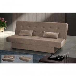 O estofamento é reforçado com percinta elástica e molas espirais, garantindo resistência para suportar até 110 kg por assento. Como sofá, acomoda até 3 pessoas; como cama, acomoda 2 com total conforto.