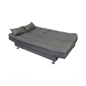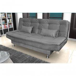 Com percintas elásticas e molas espirais, suporta até 110 kg por assento. Acompanha 2 almofadas e acomoda até 3 pessoas como sofá e 2 como cama. Os pés em alumínio agregam sofisticação, enquanto a fixação com grampos e parafusos garante firmeza.