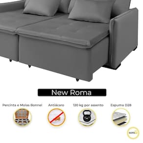 O modelo New Roma se destaca pela sua versatilidade. Ele se transforma facilmente em uma Sofá Cama, proporcionando uma opção extra de conforto e praticidade.