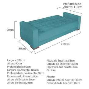 Sofá Cama 3 Lugares Suede Ipanema Azul Turquesa
