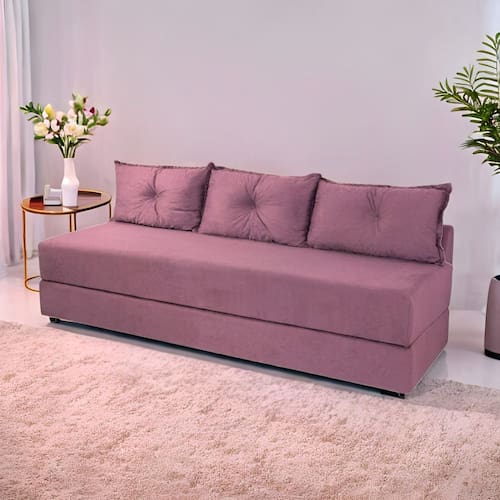 Sofá Cama 3em1 em Tecido Suede com Almofadas - Sofá que vira cama Multifuncional - Rosê