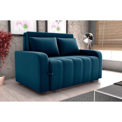 SOFÁ CAMA AMORA POSSUI DUAS UTILIDADES: SOFÁ DE DOIS LUGARES QUANDOFECHADO E CAMA QUANDO ABERTO. ESTE SOFÁ É PRODUZIDO COM MADEIRA DE REFLORESTAMENTO EPARA DAR MAIS FLEXIBILIDADE E RESISTÊNCIA SÃO USADAS CINTAS DE BORRACHA EM SUA ESTRUTURA, GARANTINDO SUA DURABILIDADE, SEM ABRIR MÃO DO CONFORTO.
