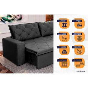E não para por aí a sua estrutura interna é composto de madeira 100% de reflorestamento tornando-o resistente, e seu assento conta com espuma D33 e molas espirais, transformando seu sofá em um verdadeiro aconchego para assistir seu filme favorito, tirar aquela soneca que você aguarda após um dia agitado e estressante, ou dar aquela maratonada na série que você adiava tanto tempo por não ter encontrado o sofá certo, até agora!