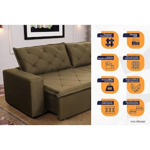 E não para por aí a sua estrutura interna é composto de madeira 100% de reflorestamento tornando-o resistente, e seu assento conta com espuma D33 e molas espirais, transformando seu sofá em um verdadeiro aconchego para assistir seu filme favorito, tirar aquela soneca que você aguarda após um dia agitado e estressante, ou dar aquela maratonada na série que você adiava tanto tempo por não ter encontrado o sofá certo, até agora!