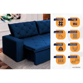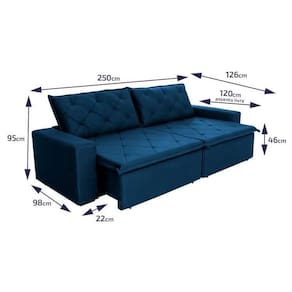 Sofá Cama Bangkok Sem Caixa 2,50m Retrátil e Reclinável Com Molas Velut Azul - King House
