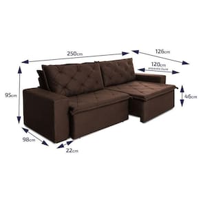 Sofá Cama Bangkok Sem Caixa 2,50m Retrátil e Reclinável Com Molas Velut Marrom - King House