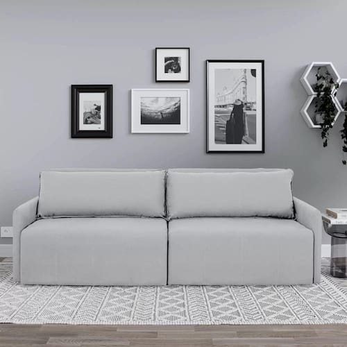 Prático e versátil, o Sofá Cama Baraúna é perfeito para quem deseja economizar espaço sem descuidar de uma decoração sofisticada. Fabricado de maneira ambientalmente correta, o sofá cama tem sua estrutura em madeira 100% reflorestada. Confortável, ele conta com assento extensível em percintas Italianas e molas Bonnel, encosto reclinável em 02 posições, acabamento do tecido em trama de linho e fibra sintética e, ainda, contém 02 almofadas soltas para o seu melhor conforto.