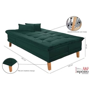 Sofá 3 em 1, ou seja, pode ser utilizado como sofá, chaise e até mesmo como cama. Esse sofá possui pés em madeira maciça, espumas de alto conforto com a densidade D26. Persintas elásticas e molas bonel. Tecido super macio com costura dupla. Esse produto pode ser utilizado em diversos ambientes. Um dos seus diferenciais, é que na posição sofá, por se tratar de um sofá cama, acomoda confortavelmente seus ocupantes devido a altura do assento até o chão. Produto Montado: Sim Almofada do assento: Fixa Almofada do encosto: Fixa Altura do assento até o chão: 51.0000 Altura do Encosto: 48 cm Altura dos Pés: 18 cm Ambiente Principal: Sala de Estar codigo_ean: 7898603517819 Complexidade da Montagem: Baixa: pode ser montado por uma pessoa sozinha Cor: Verde Cor do Produto: Verde Densidade do Assento: D-26 Densidade do Encosto: D-26 Enchimento do Assento: Espuma Enchimento do Encosto: Espuma Estilo de Braço: Sem Braços Itens Inclusos: 1 Sofá, 2 Almofadas, 4 Pés e Manual de instruções Linha ou Coleção: LINHA Manual de Especificação Técnica: https://cdn2.madeiramadeira.com.br/atributo/imperio-estofados/441637-garantia-imp-rio-estofados.pdf Manual de Montagem e Instalação: https://cdn2.madeiramadeira.com.br/atributo/imperio-estofados/441636-manual-de-montagem-versatil-e-pr-tico-madero.jpg Material dos Pés: Madeira Maciça Modelo: Somente Reclinável Necessita Montagem: Sim Nível de Conforto: Macio Origem do Produto: Nacional Possui Baú: Não Possui Rodízio: Não Profundidade Quando Estendido: 125 cm Quantidade de Itens: 1 Reclinável: Sim Recomendações de Uso, Manutenção e Limpeza: Não utilizar produtos químicos, limpar apenas com pano levemente umedecido com água. Revestimento do Assento: Veludo Liso Revestimento do Encosto: Veludo Liso Sistema de Montagem: Somente rosquear os pés Tecido Predominante: Veludo Tipo de Mola: Molas Bonnel Ean: 7898603517819