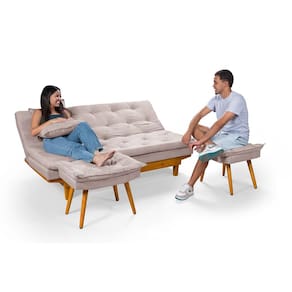 Sofá Cama Caribe Duas Banquetas Linho Essencial Estofados Itens Inclusos: 1 Sofá Cama 2 banquetas 4 Pés 2 almofadas