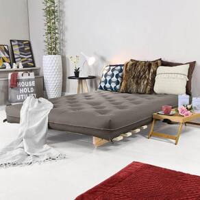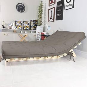 Algodão natural, fibra siliconada, espuma ortopédica D28, madeira maciçaFuton Sofá Cama Casal Oriental com Base de Madeira