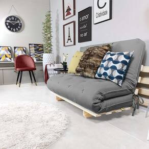 Futon Sofá Cama Casal Oriental com Base de Madeira