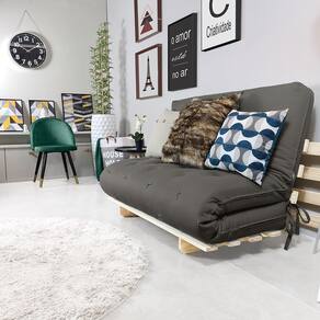 Futon Sofá Cama Casal Oriental com Base de Madeira