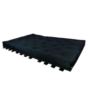 Colchão futon casalEnchimento de mantas de algodão natural e manta de fibra siliconadaEstrutura de espuma ortopédica D28Amarras nas extremidadesBase de madeira maciça