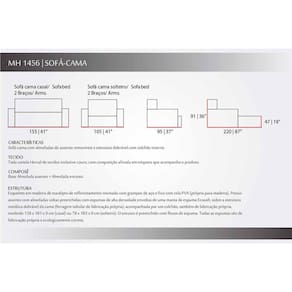 Vantagens Extras Poltrona e Sofá - Acompanha Colchão Forração do Revestimento - Courano Profundidade do Móvel Aberto - 220 Tipo de Fixação - Fixação da forração em Grampos - Fixação da forração em Cola