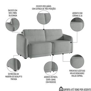 Essa peça impressionante foi projetada para trazer conforto e estilo ao seu espaço, principalmente com o recurso retrátil, em que você pode ajustar facilmente o sofá para atender às suas necessidades de assento, além de aproveitá-lo como cama e acomodar perfeitamente as suas visitas. Isso porque, a espuma D26 garante o máximo de conforto, enquanto o revestimento de alto padrão acrescenta um toque de elegância. Seja para assistir a um filme ou para receber convidados, esse sofá 2 lugares será o complemento perfeito para a sua sala de estar.
