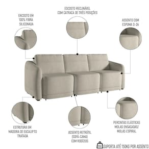 Essa peça impressionante foi projetada para trazer conforto e estilo ao seu espaço, principalmente com o recurso retrátil, em que você pode ajustar facilmente o sofá para atender às suas necessidades de assento, além de aproveitá-lo como cama e acomodar perfeitamente as suas visitas. Isso porque, a espuma D26 garante o máximo de conforto, enquanto o revestimento de alto padrão acrescenta um toque de elegância. Seja para assistir a um filme ou para receber convidados, esse sofá 3 lugares será o complemento perfeito para a sua sala de estar.