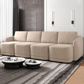 Renove sua sala de estar com o Sofá Cama Casal para Sala 316cm Polska K04 Veludo Bege, da Mpozenato.