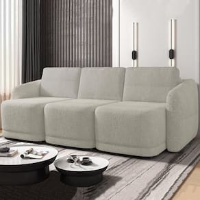 Renove sua sala de estar com o Sofá Cama Casal para Sala 336cm Polska K04 Bouclê Bege, da Mpozenato.