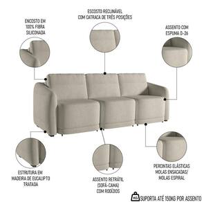 Essa peça impressionante foi projetada para trazer conforto e estilo ao seu espaço, principalmente com o recurso retrátil, em que você pode ajustar facilmente o sofá para atender às suas necessidades de assento, além de aproveitá-lo como cama e acomodar perfeitamente as suas visitas. Isso porque, a espuma D26 garante o máximo de conforto, enquanto o revestimento de alto padrão acrescenta um toque de elegância. Seja para assistir a um filme ou para receber convidados, esse sofá 3 lugares será o complemento perfeito para a sua sala de estar.