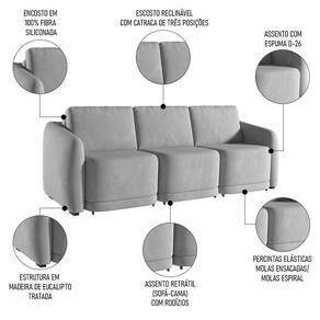 Essa peça impressionante foi projetada para trazer conforto e estilo ao seu espaço, principalmente com o recurso retrátil, em que você pode ajustar facilmente o sofá para atender às suas necessidades de assento, além de aproveitá-lo como cama e acomodar perfeitamente as suas visitas. Isso porque, a espuma D26 garante o máximo de conforto, enquanto o revestimento de alto padrão acrescenta um toque de elegância. Seja para assistir a um filme ou para receber convidados, esse sofá 3 lugares será o complemento perfeito para a sua sala de estar.
