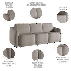 Essa peça impressionante foi projetada para trazer conforto e estilo ao seu espaço, principalmente com o recurso retrátil, em que você pode ajustar facilmente o sofá para atender às suas necessidades de assento, além de aproveitá-lo como cama e acomodar perfeitamente as suas visitas. Isso porque, a espuma D26 garante o máximo de conforto, enquanto o revestimento de alto padrão acrescenta um toque de elegância. Seja para assistir a um filme ou para receber convidados, esse sofá 3 lugares será o complemento perfeito para a sua sala de estar.