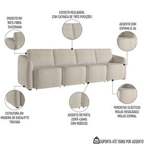 Essa peça impressionante foi projetada para trazer conforto e estilo ao seu espaço, principalmente com o recurso retrátil, em que você pode ajustar facilmente o sofá para atender às suas necessidades de assento, além de aproveitá-lo como cama e acomodar perfeitamente as suas visitas. Isso porque, a espuma D26 garante o máximo de conforto, enquanto o revestimento de alto padrão acrescenta um toque de elegância. Seja para assistir a um filme ou para receber convidados, esse sofá 4 lugares será o complemento perfeito para a sua sala de estar.