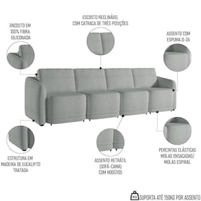 Essa peça impressionante foi projetada para trazer conforto e estilo ao seu espaço, principalmente com o recurso retrátil, em que você pode ajustar facilmente o sofá para atender às suas necessidades de assento, além de aproveitá-lo como cama e acomodar perfeitamente as suas visitas. Isso porque, a espuma D26 garante o máximo de conforto, enquanto o revestimento de alto padrão acrescenta um toque de elegância. Seja para assistir a um filme ou para receber convidados, esse sofá 5 lugares será o complemento perfeito para a sua sala de estar.