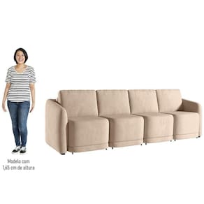 Renove sua sala de estar com o Sofá Cama Casal para Sala 436cm Polska K04 Veludo Bege, da Mpozenato.