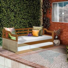 Encosto com 3 barras na horizontal e outras barras na vertical para maior resistênciaCama auxiliar possui um kit de rodízios (rodinhas) para melhor locomoçãoSofá cama suporta até 120 kgCama auxiliar suporta até 100 kgPode ser em diversos ambientes como sala, quarto ou varandaProduzido em madeira maciçaRipas produzidas em compensado naval (maior durabilidade)Incluso 2 colchões D20 (muito macio)