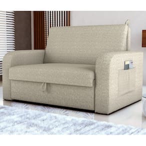 Material do tecido é Linho . Contém um baú para facilitar o armazenamento de cobertas e travesseiros. Espuma D23 Braças, D20 Assento e encosto.