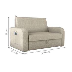 Material do tecido é Linho . Contém um baú para facilitar o armazenamento de cobertas e travesseiros. Espuma D23 Braças, D20 Assento e encosto.