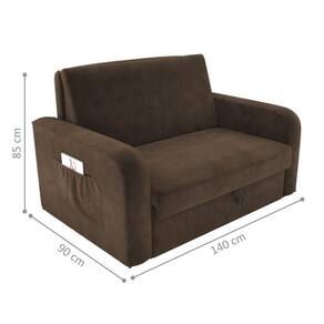 COR PREDOMINANTE: Marrom | COMPRIMENTO DO PRODUTO (CM): 85 | CONTEÚDO DA EMBALAGEM: 1 Sofá cama | PESO PRODUTO COM EMBALAGEM (KG): 52 | PESO SUPORTADO(KG):: 110kg | ALTURA DO PRODUTO COM EMBALAGEM (CM): 90 | MATERIAL PRINCIPAL: Veludo | LARGURA PRODUTO COM EMBALAGEM (CM): 145 | LARGURA DO PRODUTO (CM): 140 | ALTURA DO PRODUTO (CM): 85 | MARCA: CasaH | INSTRUÇÕES/CUIDADOS: Limpar com pano macio e seco, não utilizar produtos abrasivos | PRODUTO: Sofá cama | PESO DO PRODUTO (KG): 49 | MATERIAL PARA FILTRO: Veludo | QUANTIDADES DE CAIXAS DE EMBALAGEM: 1 | PRODUTO PRECISA DE MONTAGEM?: Sugerimos a contratação de um montador para a montagem do produto. Não nos responsabilizamos por causadas no ato da montagem. | ESTADO DE ORIGEM: PR | COMPRIMENTO PRODUTO COM EMBALAGEM (CM): 87 | DESCRIÇÃO DO TAMANHO: 85x140x85 cm | CORES DO PRODUTO (FILTRO DE CORES): Marrom