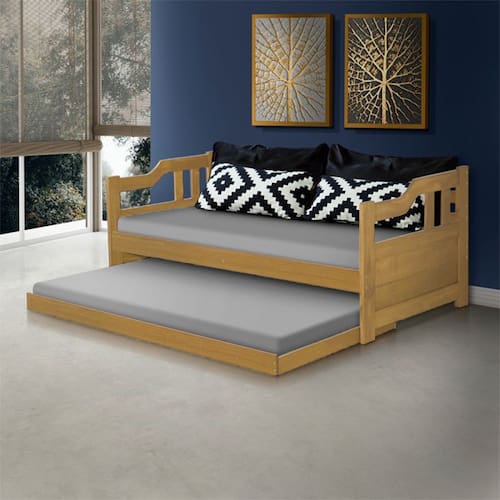 Sofá Cama Solteiro de Madeira Maciça com Cama Auxiliar Atraente Imbuia