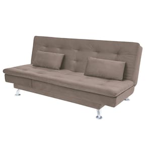 Sofá-Cama com Chaise 188cm Linoforte Rayssa Suede Veludo Espuma D-33 - Bege Claro