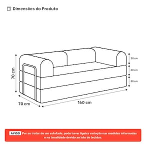 ** POR SE TRATAR DE UM ESTOFADO, AS MEDIDAS PODEM SOFRER UMA VARIAÇÃO DE ATÉ 3 CM.