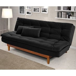Este sofá cama acomoda tranquilamente 3 pessoas sentadas e duas deitadas, ele pode ser usado com até 3 posições diferentes, espumas de alto conforto com a densidade tanto no assento como no encosto Espuma D-26, com percintas elástica e molas bonel, pés e base em madeira maciça, acompanha 2 almofadas que pode ser usado como travesseiro. Acompanha Almofadas extras: 02 Almofada do assento: Fixa Almofada do encosto: Fixa Altura: 90 cm Altura do assento até o chão: 43 cm Altura do Encosto: 47 cm Altura dos Pés: 12 cm Ambiente Principal: Sala de Estar calculo: unidade Complexidade da Montagem: Baixa: pode ser montado por uma pessoa sozinha Cr: Preto Cr do Produto: Preto Densidade do Encosto: D-26 Enchimento do Assento: Espuma Enchimento do Encosto: Espuma Estilo: Retrô Estilo de Braço: Sem Braços Firmeza do Assento: Macio Informações Complementares: Acomoda 3 pessoas sentadas e 2 deitadas Itens Inclusos: 1 Sofá Cama, 4 Pés e Manual de Montagem. Largura: 190 cm Linha ou Coleção: Manual de Especificação Técnica: https://cdn2.madeiramadeira.com.br/atributo/imperio-estofados/551817-garantia-imp-rio-estofados.pdf Material da Estrutura: Madeira Pinus Material dos Pés: Madeira Medida como Cama (A x L x P): 43cm x 190cm x 127cm Modelo: Somente Reclinável Necessita Montagem: Sim Origem do Produto: Nacional Peso: 47 kg Possui Apoio para Braços: Não Possui Baú: Não Possui Percintas Elásticas: Sim Possui Pés: 04 Possui Rodízio: Não Profundidade: 96 cm Profundidade Quando Estendido: 127 cm Quantidade de Lugares: 03 Reclinável: Sim Recomendações de Uso, Manutenção e Limpeza: Não utilizar produtos químicos, limpar apenas com pano levemente umedecido com água. Revestimento do Assento: Suede Aveludado Revestimento do Encosto: Suede Aveludado Rodízio com Trava: Não Sistema de Montagem: Somente rosquear os pés status-cadastro: Aprovado Suporta Até (kg): 300 kg Tamanho: Tecido Predominante: Suede Tipo de Assento: Fixo Tipo de Encosto: Regulável