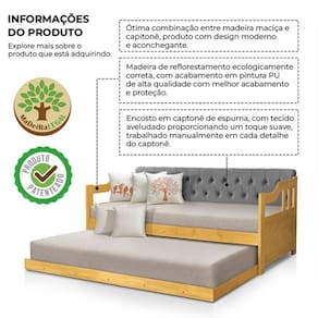 Com Detalhe Estofado Capitonê Tecido Estofado: Veludo Cor Estofado: Cinza Estrutura em Madeira Cor Estrutura: Imbuia Com estrado de Ripas de MDF 9mm