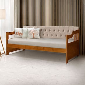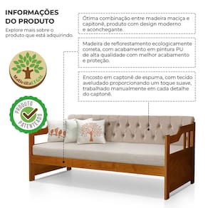 Com Detalhe Estofado Capitonê Tecido Estofado: Veludo Cor Estofado: Bege Estrutura em Madeira Cor Estrutura: Castanho Com estrado de Ripas de MDF 9mm