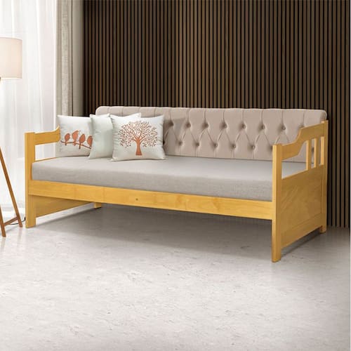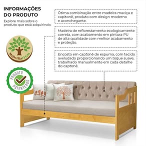 Com Detalhe Estofado Capitonê Tecido Estofado: Veludo Cor Estofado: Bege Estrutura em Madeira Cor Estrutura: Imbuia Com estrado de Ripas de MDF 9mm