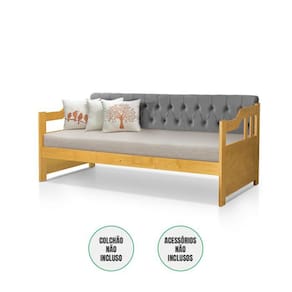 Com Detalhe Estofado Capitonê Tecido Estofado: Veludo Cor Estofado: Cinza Estrutura em Madeira Cor Estrutura: Imbuia Com estrado de Ripas de MDF 9mm