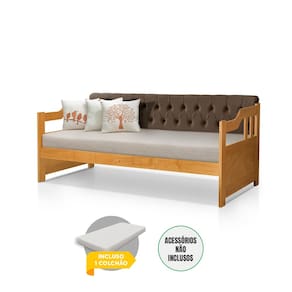 Sofá Cama Dublin Mona Estofado Capitonê Veludo Marrom Madeira com 1 Colchão - Imbuia