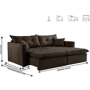 Sofa Cama e Reclinavel Lisboa 2,20m 04 Lugares Mola Ensacada Txr Suavidade e conforto em sua casa com o Sofá cama Lisboa, que possui encosto reclinável, assento com Pillow de molas ensacadas , percinta elástica tipo italiana para maior durabilidade, fibra siliconada, assento retrátil com rodízios que facilitam seu movimento.