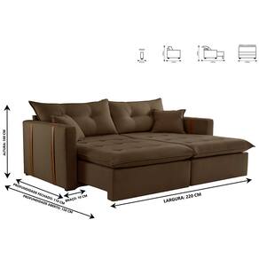 Sofa Cama e Reclinavel Lisboa 2,20m 04 Lugares Mola Ensacada Txr - Marrom Chocolate