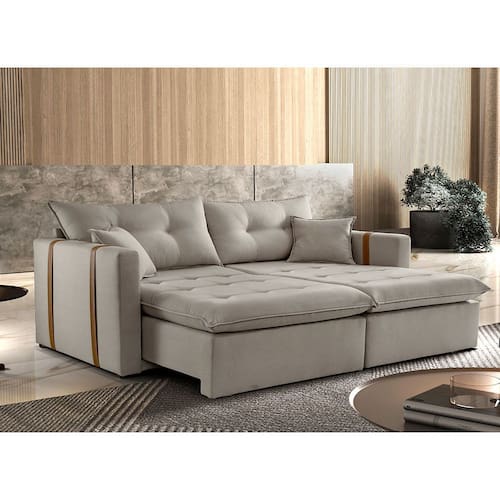 Sofa Cama e Reclinavel Lisboa 2,60m 05 Lugares Mola Ensacada Txr Suavidade e conforto em sua casa com o Sofá cama Lisboa, que possui encosto reclinável, assento com Pillow de molas ensacadas , percinta elástica tipo italiana para maior durabilidade, fibra siliconada, assento retrátil com rodízios que facilitam seu movimento.