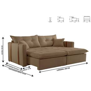 Características: Tipo: Sofá 5 lugares Cama, Retrátil e Reclinável Marca: TXR Modelo: Lisboa Estrutura: Madeira de origem certificada, Eucalipto Revestimento: Em tecido Veludo Bege Pés: Em madeira reflorestada Assento: Retrátil de duplo molejo - mola Bonnel + percinta tipo Italiana + Pillow de molas ensacadas com espuma D28 Encosto: Reclinável em 3 estágios. Braços: 10 cm. Retrátil e Reclinável: Com mecanismo em aço